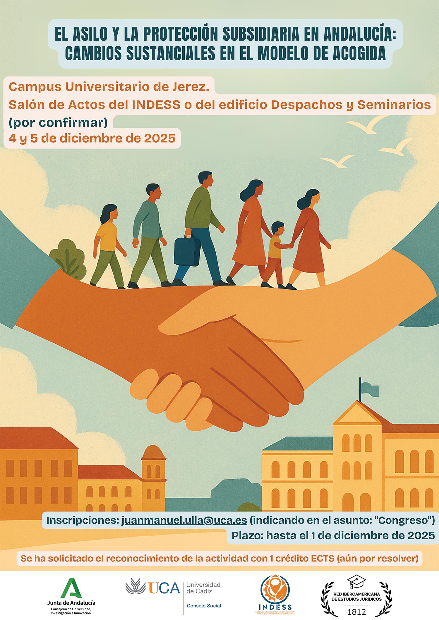 “Los próximos días 4 y 5 de diciembre tendrá lugar en el Campus de Jerez el congreso “El asilo y la protección subsidiaria en Andalucía: cambios sustanciales en el modelo de acogida”.