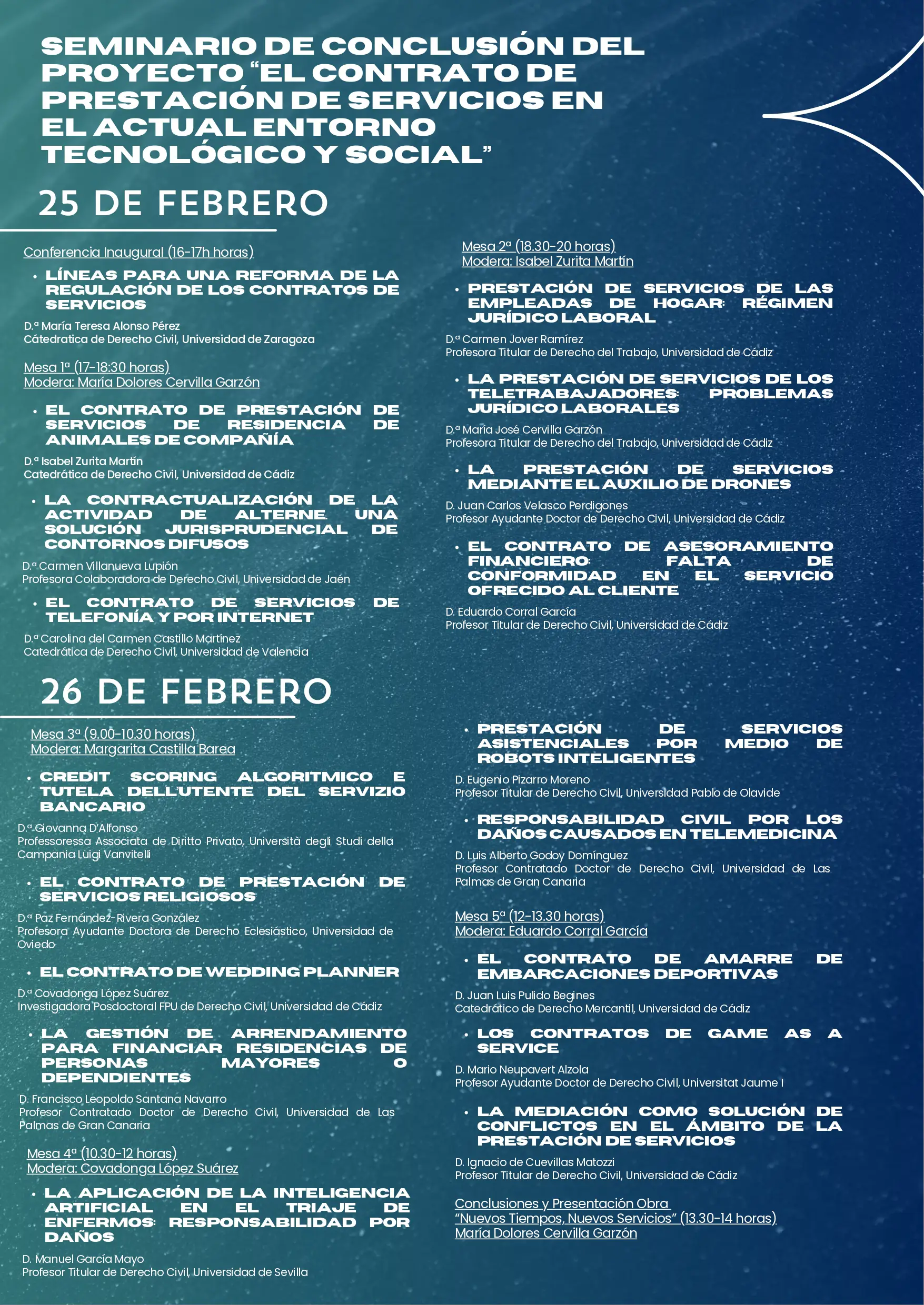 Os invitamos al Seminario de Conclusión del Proyecto CONSERTECS “El contrato de prestación de servicios en el actual entorno tecnológico y social”, que se celebrará los días 25 y 26 de febrero de 2026 en formato dual (presencial en el Campus de Jerez y online vía Google Meet).