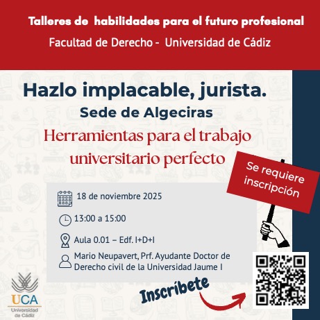 La facultad de Derecho os invita a ” Hazlo implacable, jurista· un taller para potenciar vuestras habilidades y lograr el trabajo universitario perfecto.