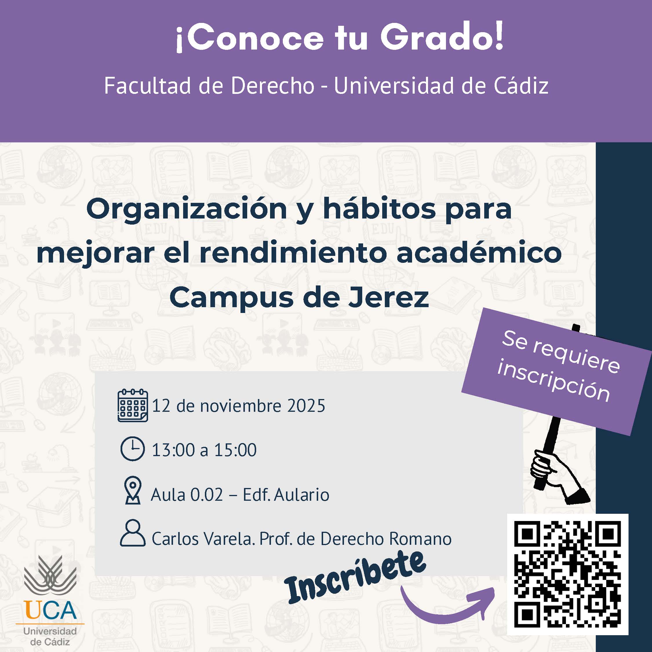 La Facultad de Derecho te invita participar en el taller “Organización y hábitos para mejorar el rendimiento académico”. 🎓