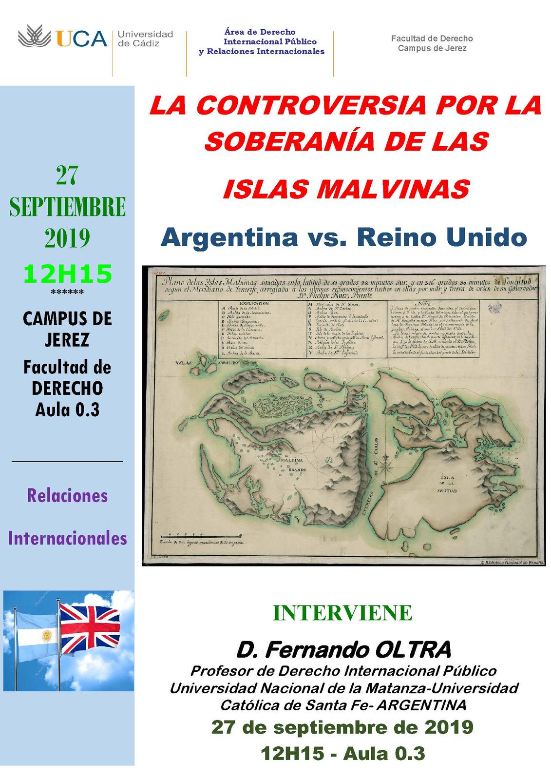 El 27 de septiembre de 2019, a las 12:15h se lleva a cabo la conferencia “La Controversia por la Soberanía de las Islas Malvinas – Argentina vs. Reino Unido” en la que interviene D. Fernando Oltra, Profesor de Derecho Internacional Público de la Universidad Nacional de la Matanza-Universidad Católica de Santa Fe (Argentina).
