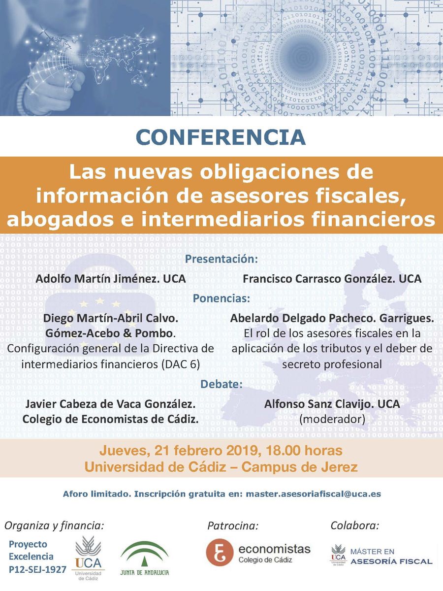 Conferencia “Las nuevas obligaciones de información de asesores fiscales, abogados e intermediarios financieros” 21 febrero 2019