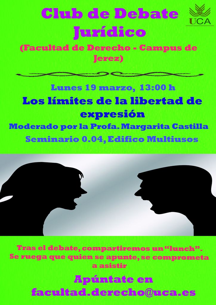 Dentro del Club de Debate Jurídico se organiza “Los límites de la libertad de expresión”, el lunes 19 de marzo.