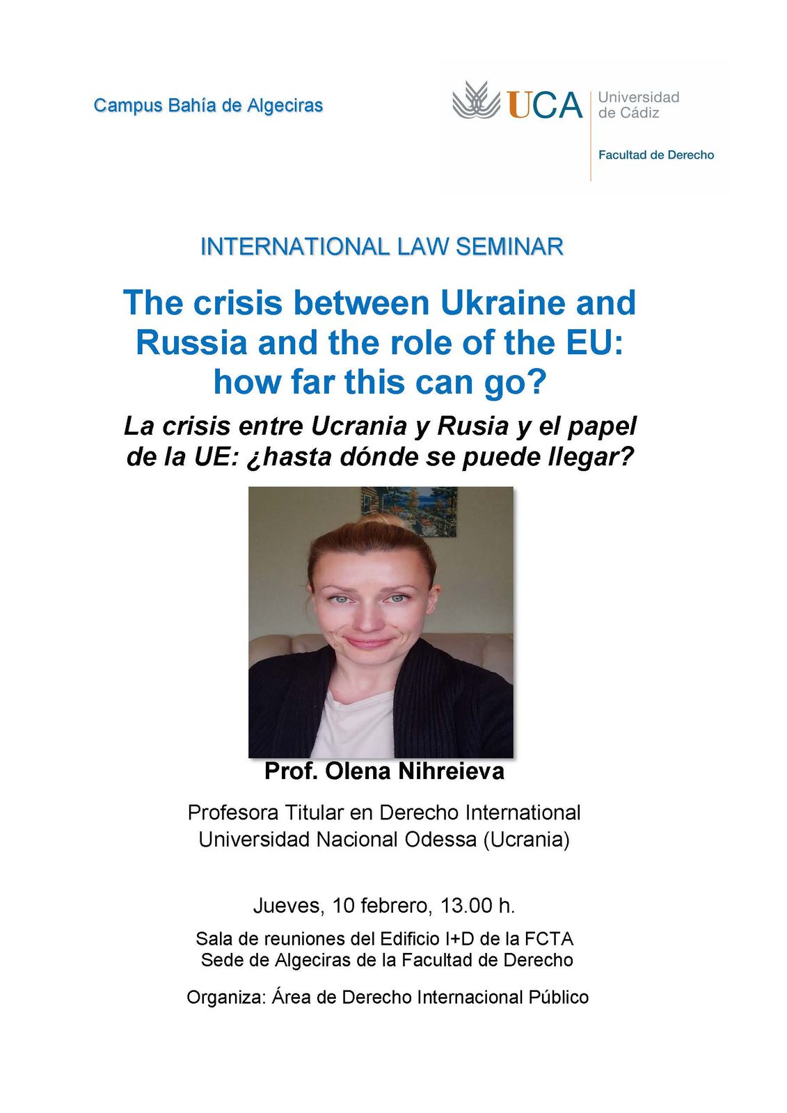 International Law Seminar “The crisis between Ukraine and Russia and the role of the EU: how far this can go?” – La crisis entre Ucrania y Rusia y el papel de la UE: ¿hasta dónde se puede llegar? 10 febrero 2022