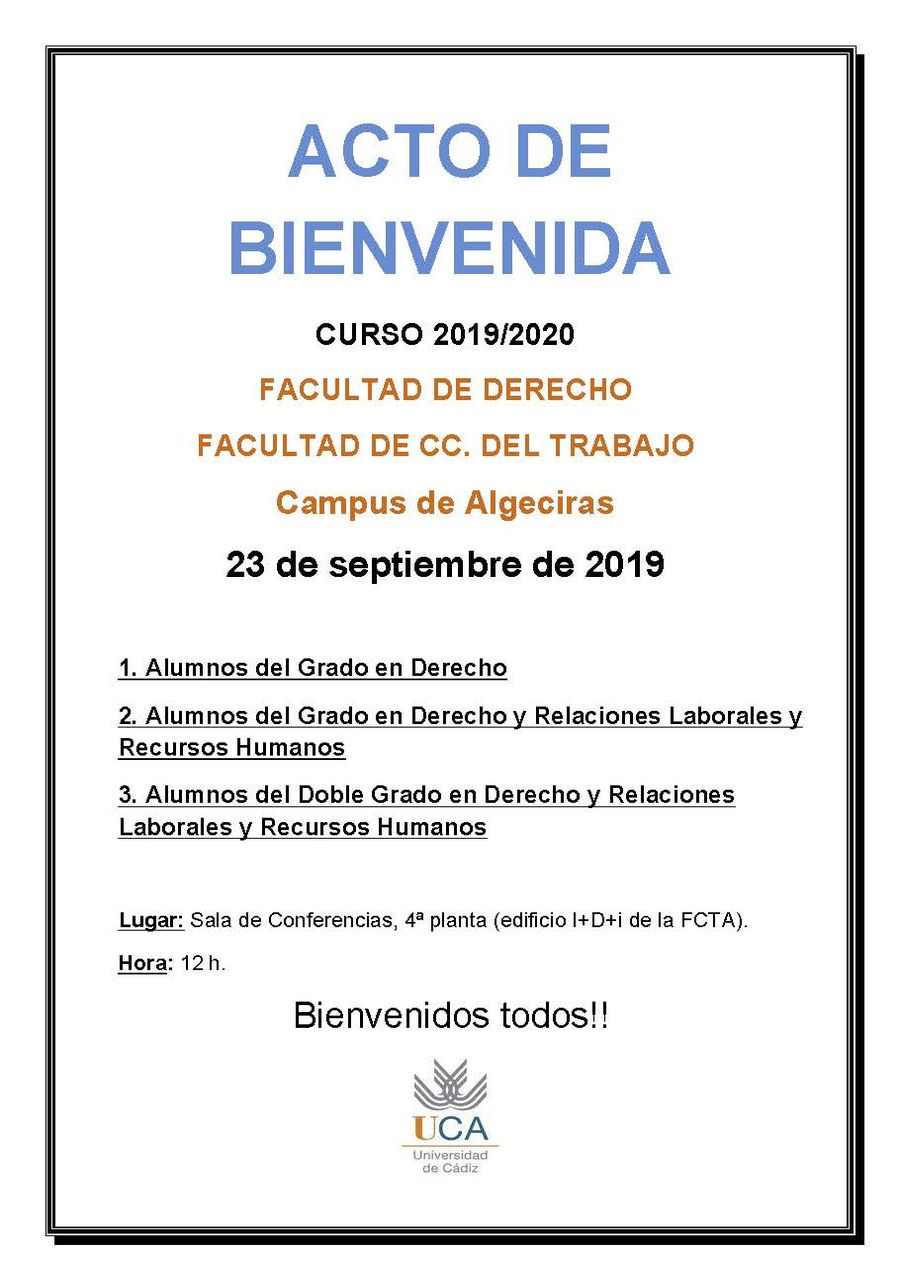 Jornada de Bienvenida en la Facultad de Derecho de la Sede de Algeciras curso 2019/2020 23 septiembre 2019