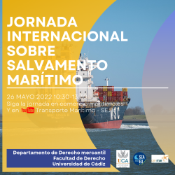 El jueves 26 de mayo de 2022, de 10:30h a 13:30h se lleva a cabo la Jornada Internacional sobre Salvamento Marítimo organizada por el Departamento de Derecho Mercantil de la Facultad de Derecho.