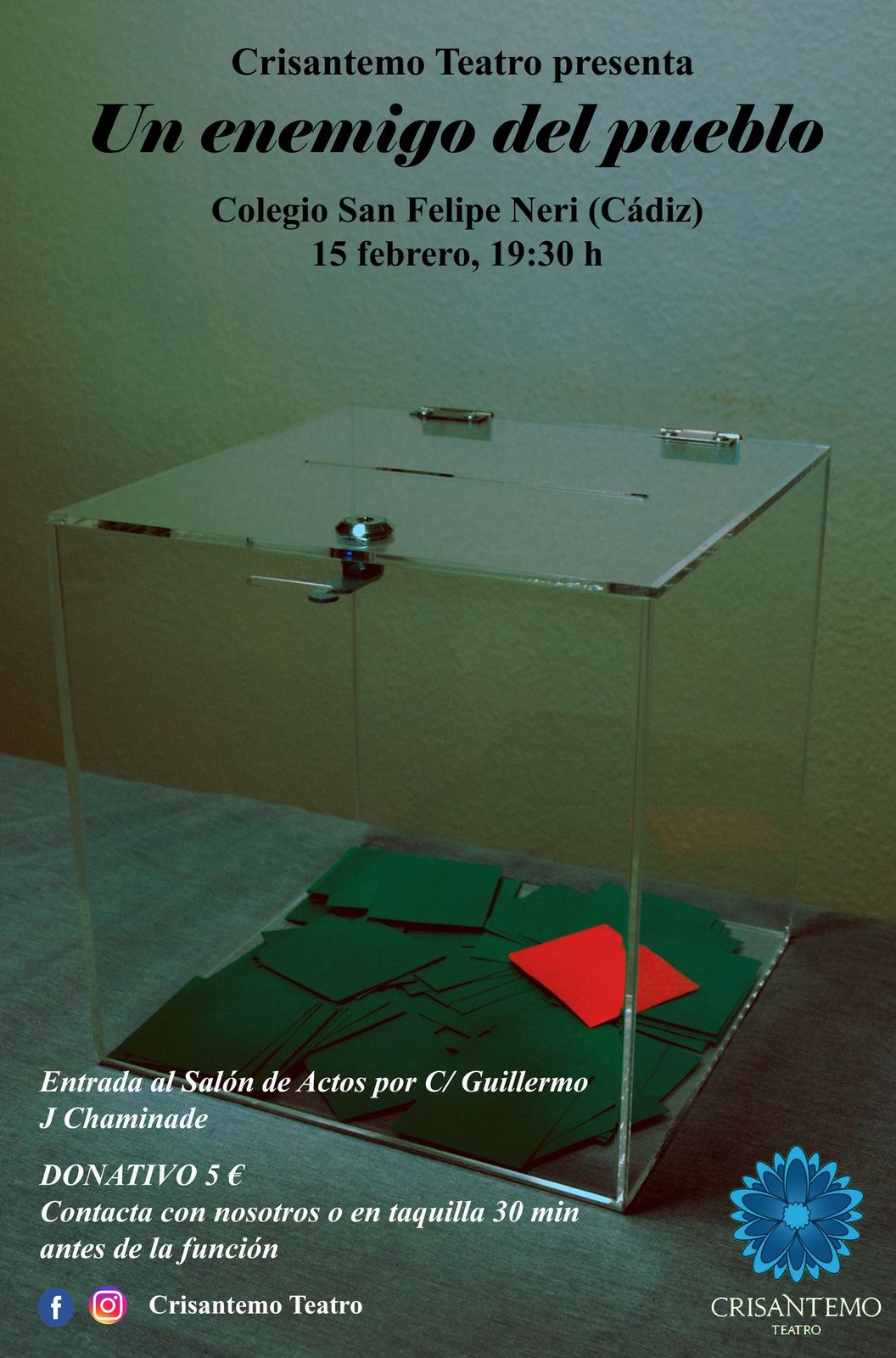 La compañía Crisantemo Teatro, dirigida por un alumno del Máster en Abogacía de la Universidad de Cádiz, regresa con una adaptación de “Un enemigo del pueblo” 8 febrero 2020