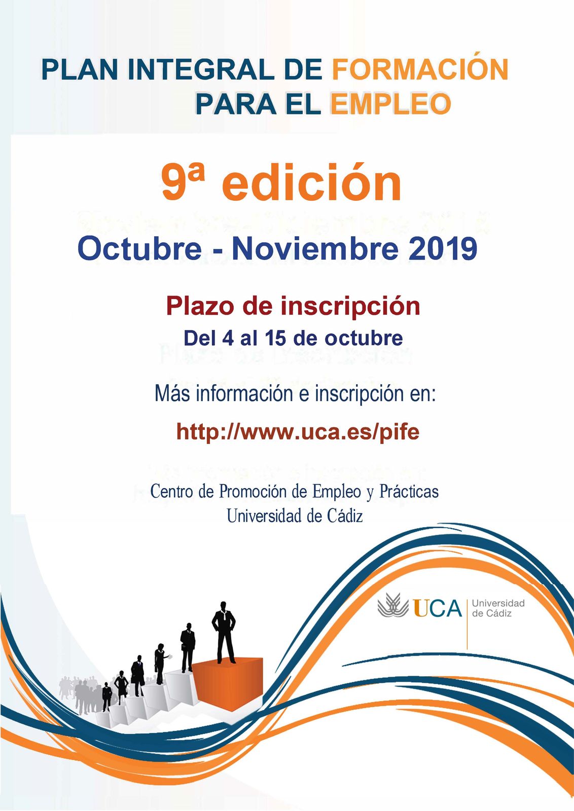 El Centro de Promoción de Empleo y Prácticas de la Universidad de Cádiz, pone en marcha la 9ª Edición del PLAN INTEGRAL DE FORMACIÓN PARA EL EMPLEO (PIFE) para el curso académico 2019/2020, con la finalidad de mejorar la empleabilidad del alumnado matriculado en la Universidad de Cádiz.