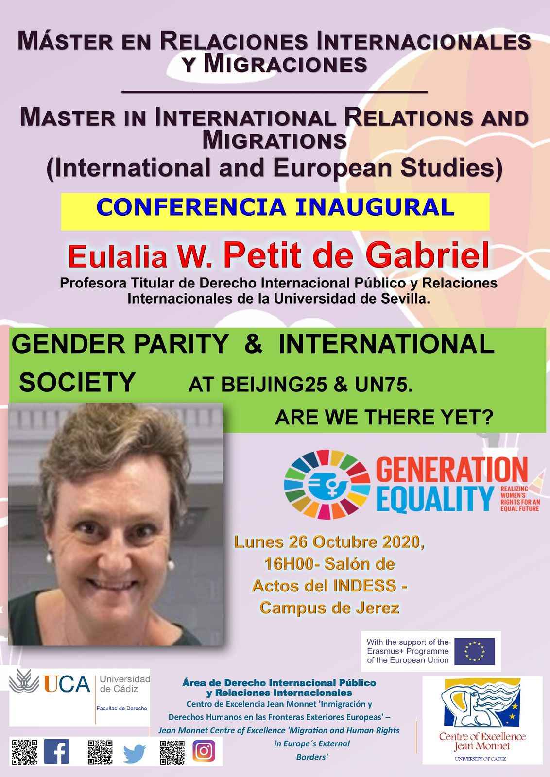 Conferencia Inaugural “Gender Parity and International Society” del Máster en Relaciones Internacionales y Migraciones 26 octubre 2020