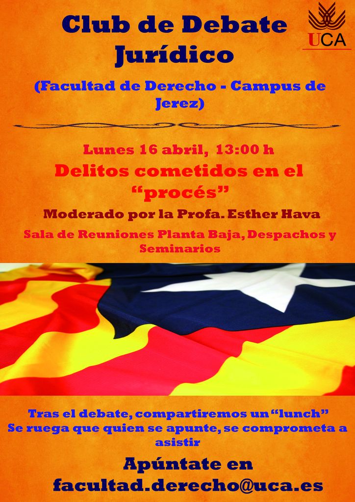 Dentro del Club de Debate Jurídico se organiza “Delitos cometidos en el “procès””, el lunes 16 de abril.