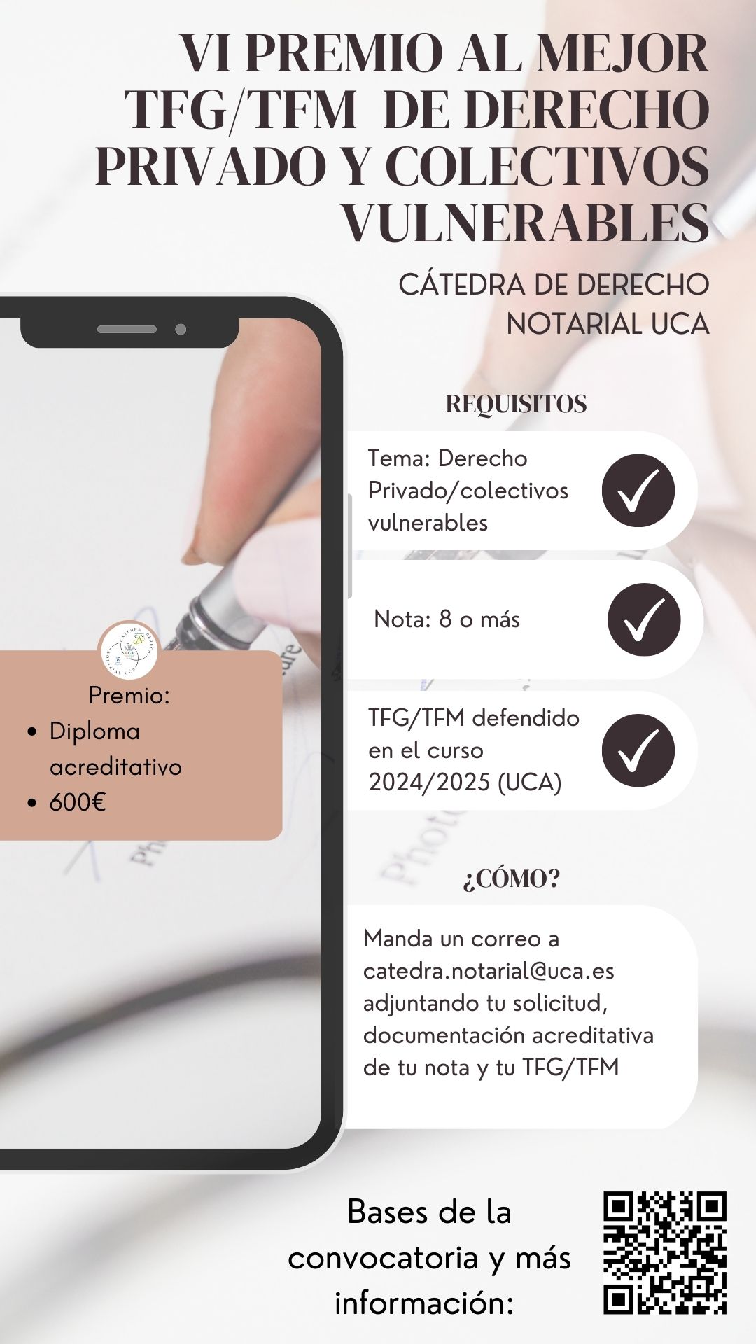 A través del presente Premio, la Cátedra de Derecho Notarial pretende estimular en el alumnado la investigación, el análisis y el estudio crítico, animándole a formular propuestas originales y fundamentadas en las que se contengan soluciones a la problemática socio-económica actual que incide, especialmente, en determinados colectivos y en la que juegan un papel clave las instituciones del Derecho privado.