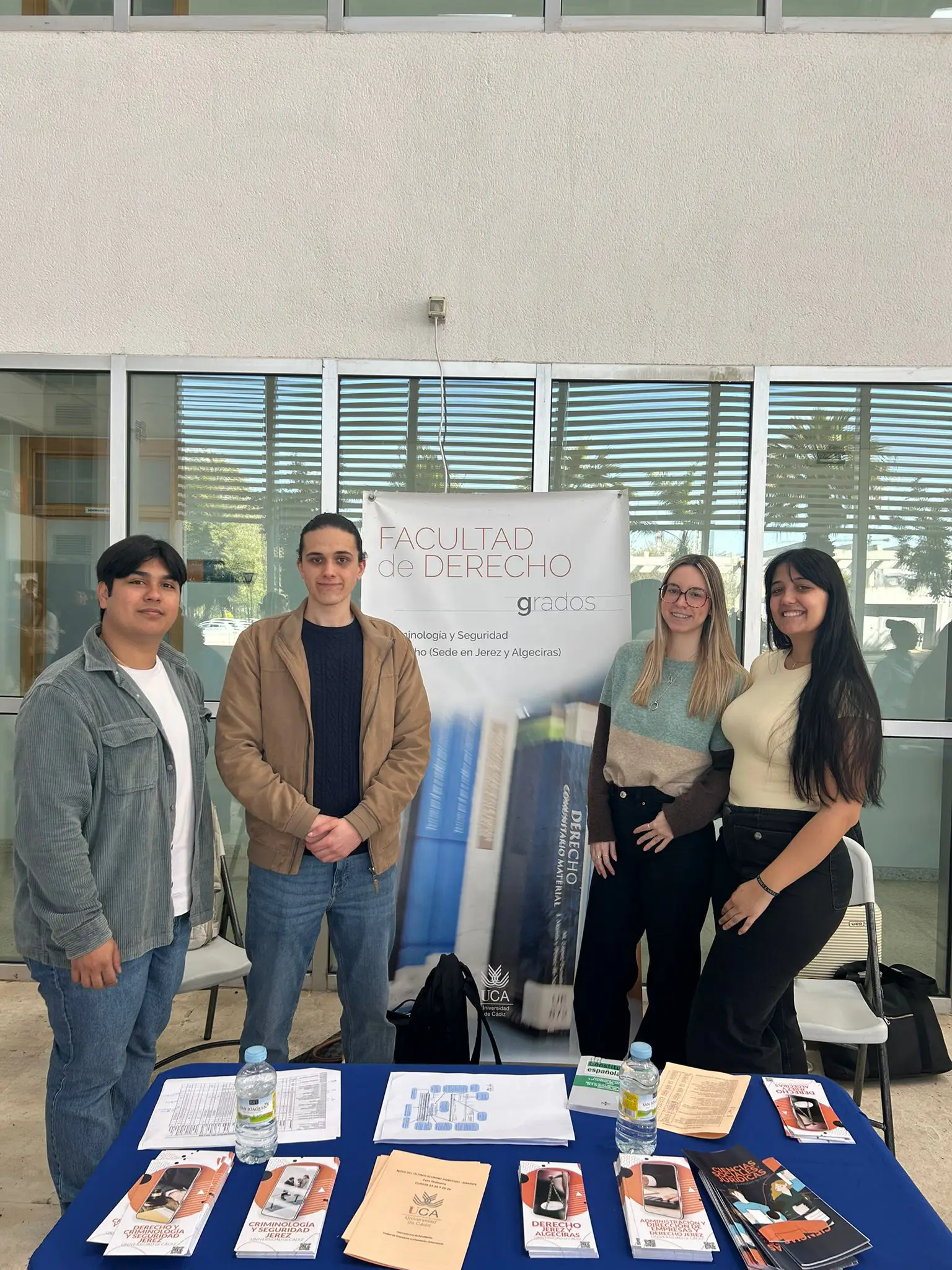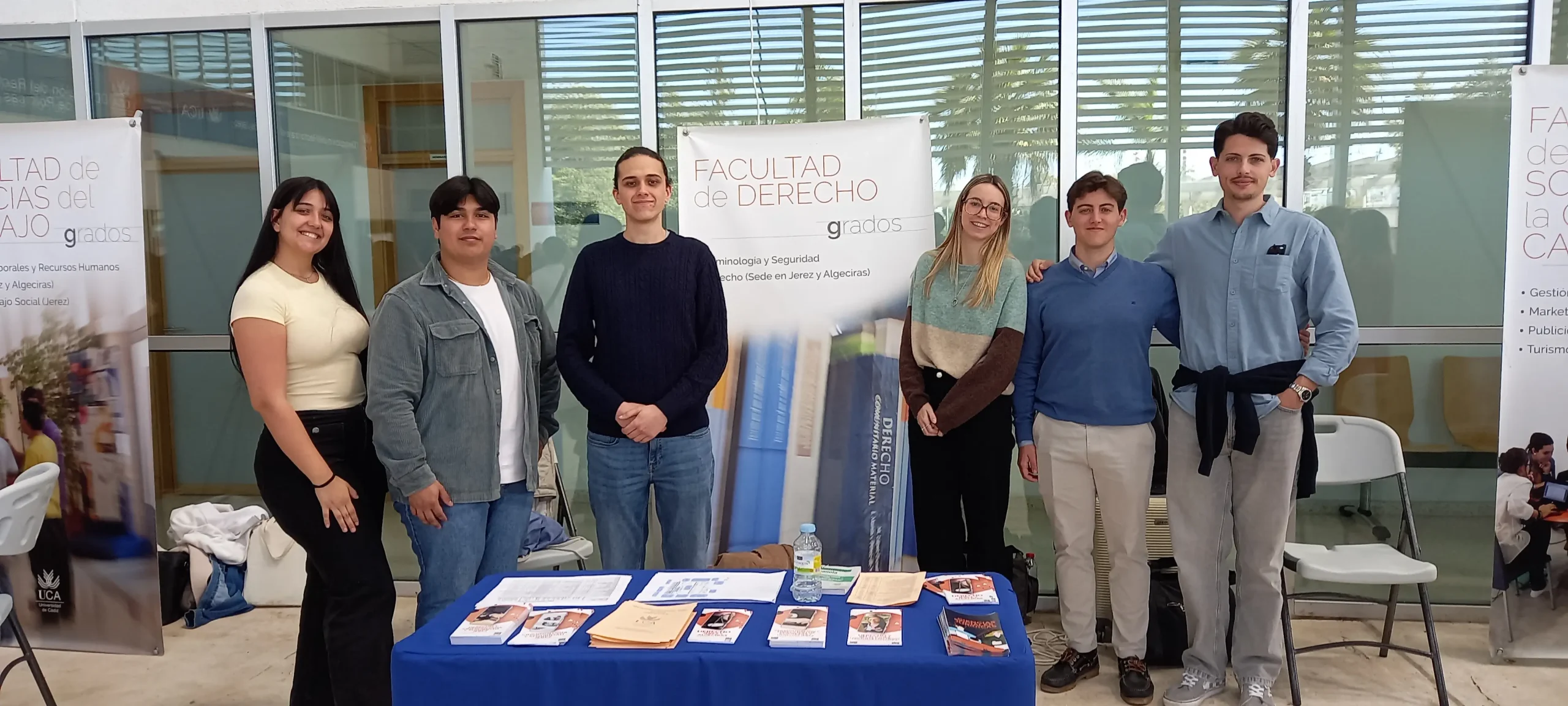Para dar conocer la oferta formativa de la Facultad de Derecho al alumnado pre-universitario, estuvo la profesora Fuensanta Rabadán que contó con la inestimable colaboración de los alumnos Álvaro García, Yago Piera, M.ª Ángeles Venega, Norson Leonardo Gutiérrez, Alberto Segura y Julia González (estudiantes del Grado en Derecho, Doble Grado Derecho y Criminología y del Máster de la Abogacía de la Facultad de Derecho).