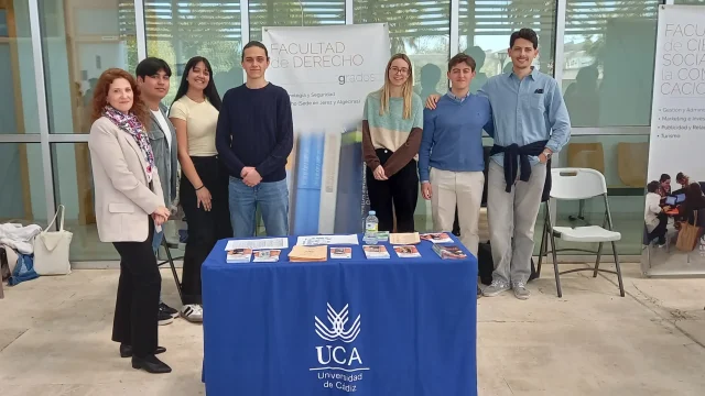 Esta sesión se suma a las celebradas en el campus de Puerto Real (18 marzo y 19 de marzo) en las que el stand de la Facultad de Derecho estuvo atendido por los profesores Leticia Cabrera y Eduardo Corral, y alumnado colaborador. Las jornadas se completarán con las sesiones de los días 24 de marzo (Campus de Cádiz) y 26 de marzo (Bornos) que por la Facultad de Derecho contarán, respectivamente, con la presencia de los profesores Alejandra Pastrana y Juan Carlos Velasco, y de alumnos colaboradores del Doble Grado Derecho+ADE